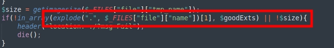 Possible Vulnerable File upload exploit. Improper handling with the splitting of the image name